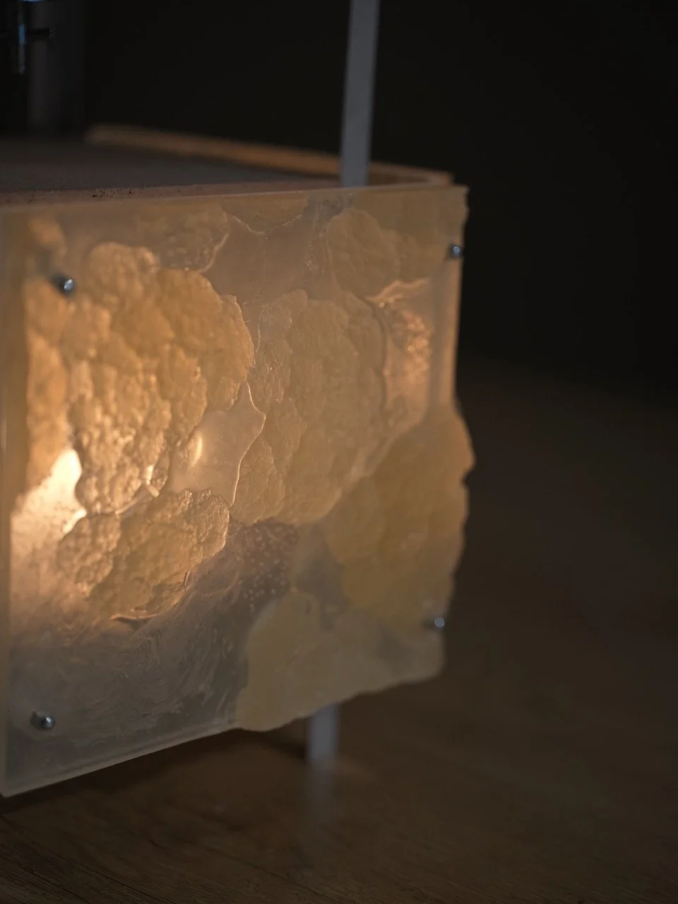 Sensible aux variations thermiques lors de sa polymérisation, la matière capture l’empreinte de son environnement : chaque pièce devient le témoin unique de l’atmosphère du jour de sa création, une sorte d’archive météorologique.