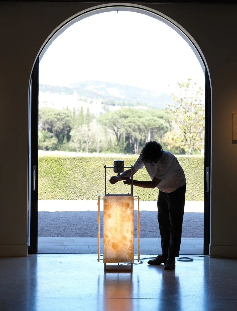 Sensible aux variations thermiques lors de sa polymérisation, la matière capture l’empreinte de son environnement : chaque pièce devient le témoin unique de l’atmosphère du jour de sa création, une sorte d’archive météorologique.